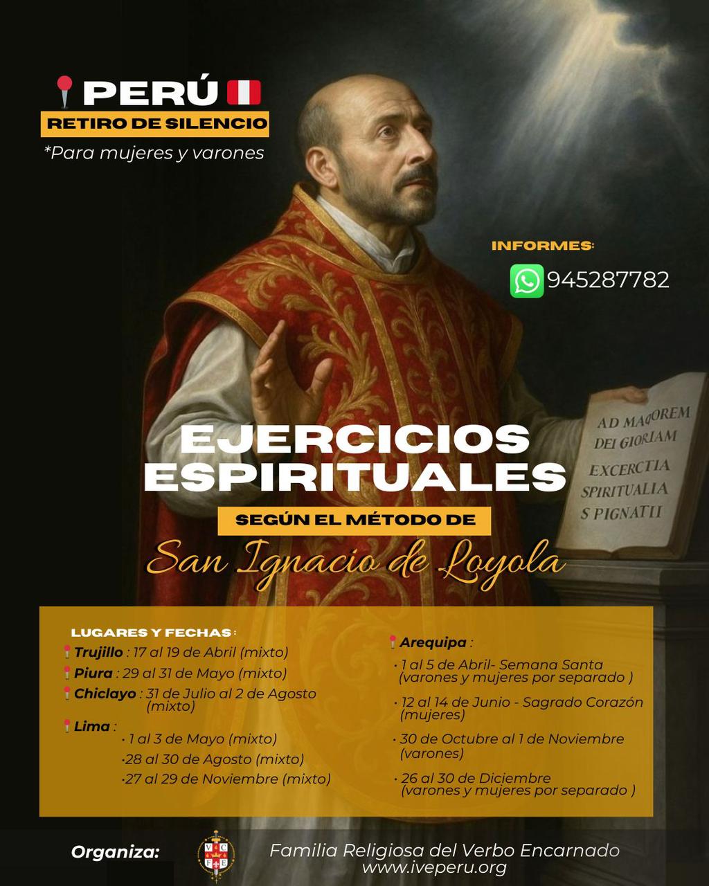 [PERÚ] Esercicios Espirituales para mujeres (AREQUIPA) + Añadir Google Calendar Exportación + iCal / Outlook 00 días 00 horas 00 minutos 00 segundos Fecha Abr 01 - 05 2026 Hora 8:00 am - 6:00 pm Localización Arequipa Categoría Peru Organizador IVE Peru Teléfono +51 53 883488 Correo electrónico [email protected] Compartir este evento